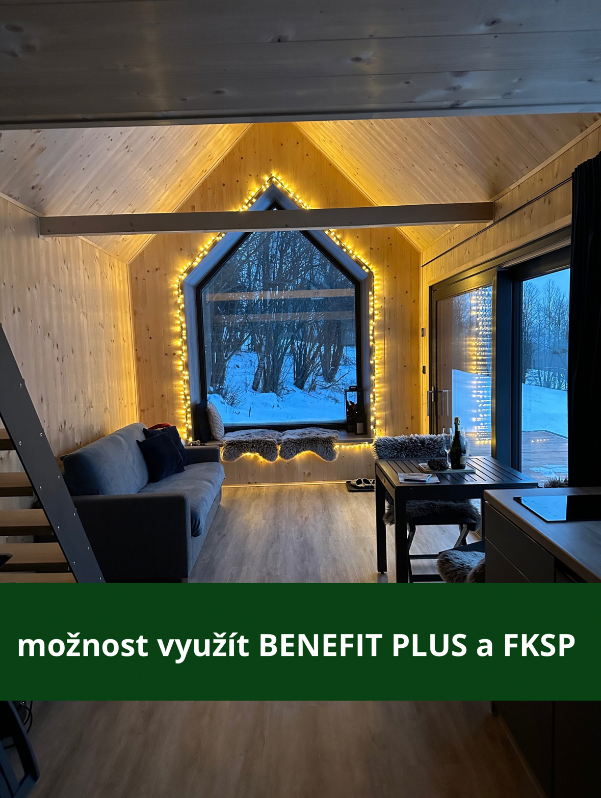 S radostí oznamujeme, že nyní můžete své body z Benefit Plus, popř. FKSP využít na ubytování v luxusních tinyhousech Challet44 a Challet94 v krásném prostředí Jeseníků.