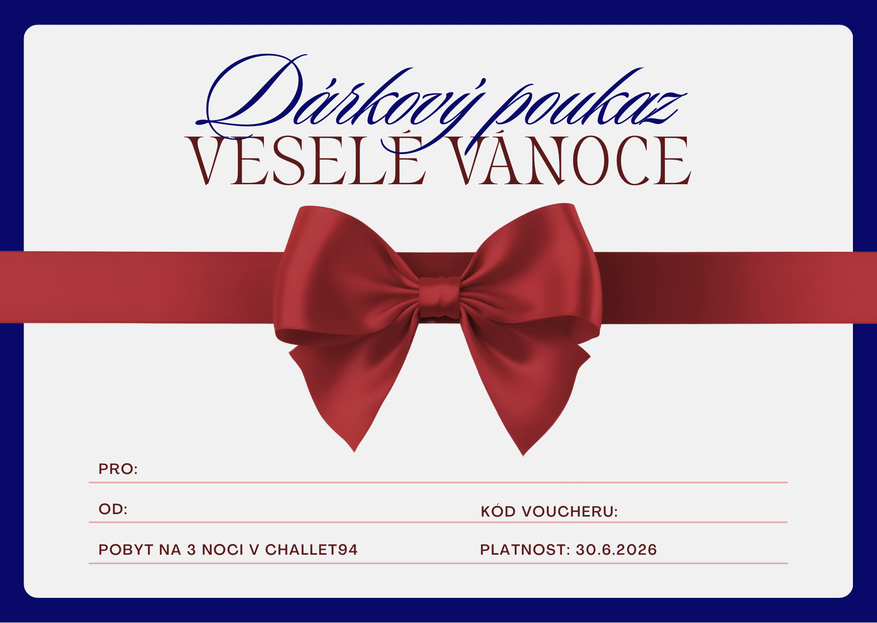 Voucher na 3 noci získáte při objednání do 24.12.2025 za cenu 2 nocí. Platnost voucheru je do 30.6.2026.