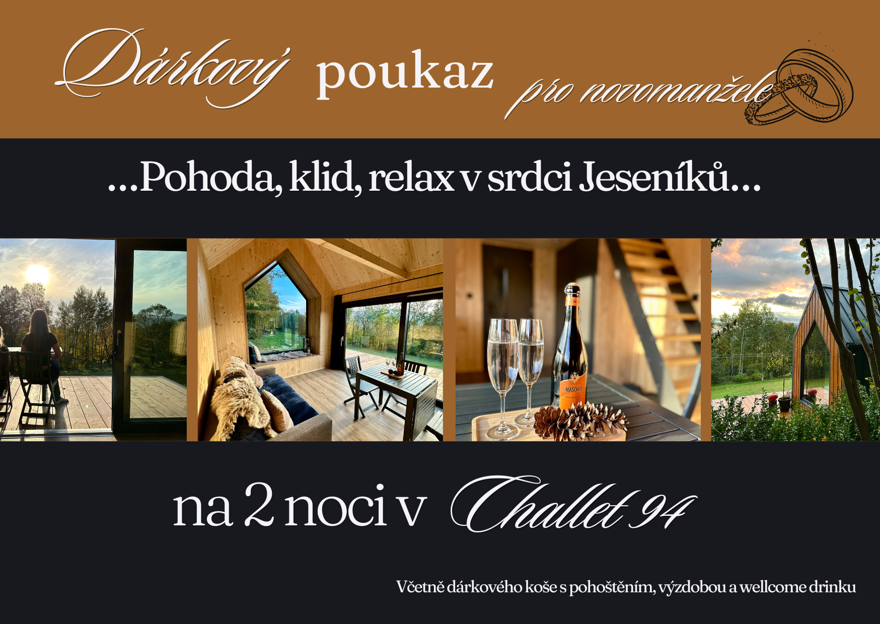 Romantický svatební pobyt na 2 noci pro novomanžele, cena zahrnuje dárkový koš - prosecco, kaviár, jahody, bagetku, sýr brie a olivy