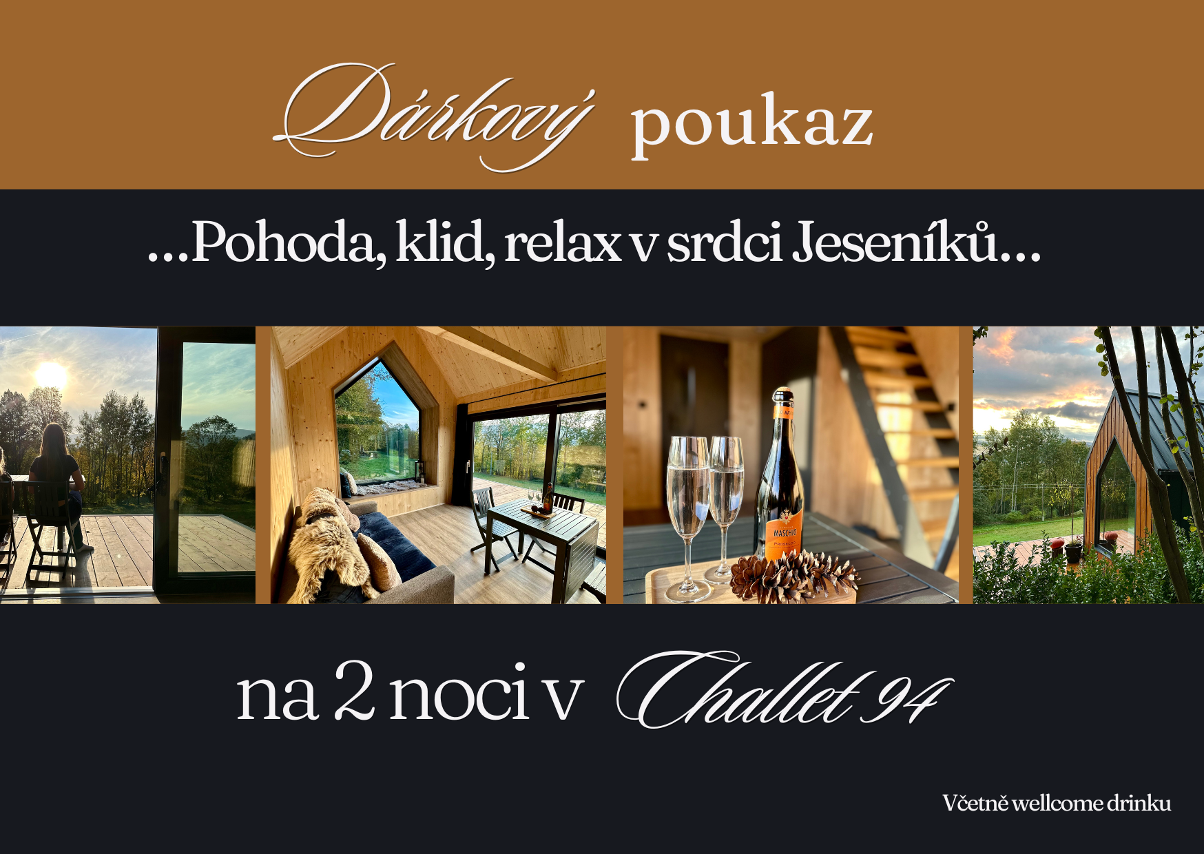 Pobyt na 2 noci pro 4, cena zahrnuje pobyt pro 4 osoby včetně wellcome drinku - prosecco, lázeňského poplatku a závěrečného úklidu.